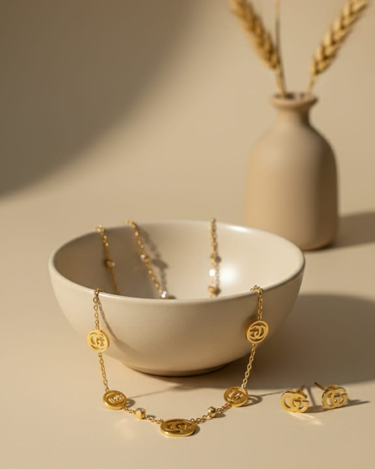 Golden Gucci logo bendent and earing stainless steel