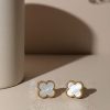 These are minimalist, gold-toned heart-shaped stud earrings, designed with a subtle curved or folded appearance, presented on a light, textured surface.