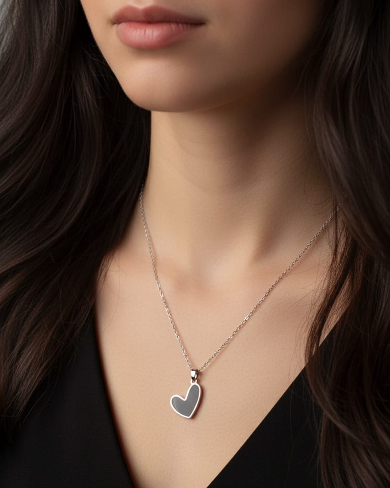 A sleek silver chain necklace featuring a simple, polished silver heart pendant.