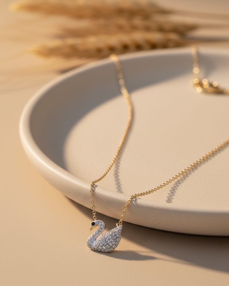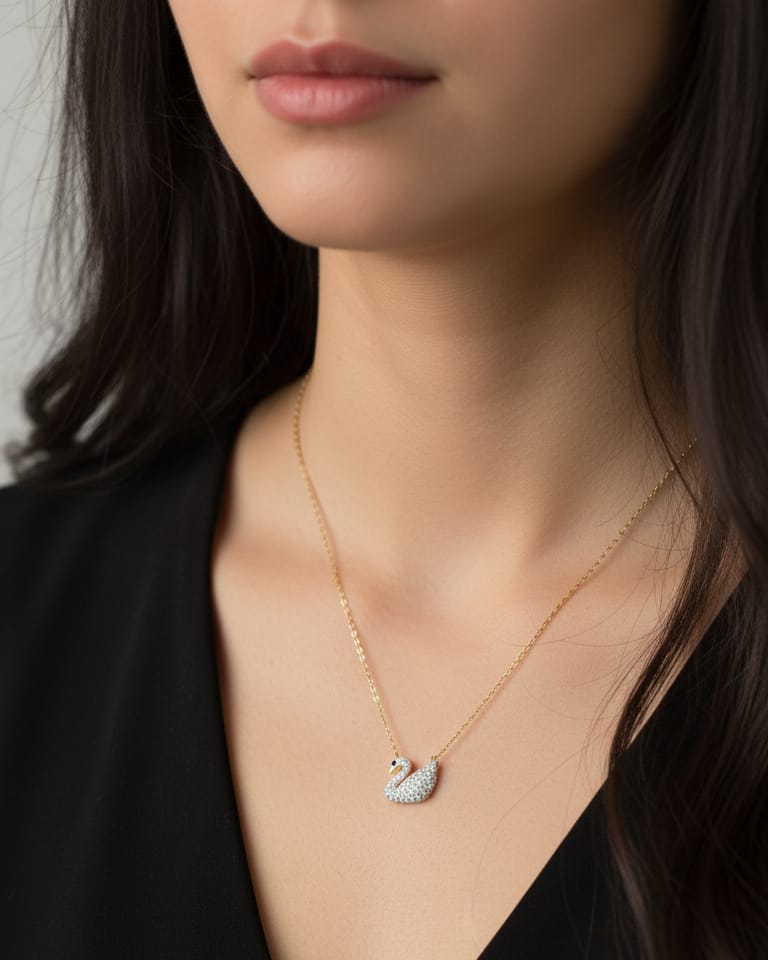 Black and white colour available A elegant gold chain necklace with a beautiful swan pendant completely covered in sparkling